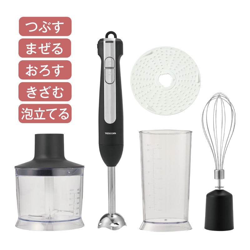 【家電製品の製造開発・テスコム公式】フードプロセッサー TK213の製品ページです。当製品はまぜる、きざむ、おろす(粗目・細か目)、泡立てる、5つの機能で料理の幅が広が…